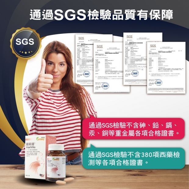 主要成分:β胡蘿蔔素、維生素D3、維生素E、維生素B1、維生素B2、維生素 B6、維生素B12、菸鹼醯胺、葉酸、生物素、本多酸鈣、維生素C、碳酸鈣、丁烯二酸亞鐵、碘化鉀、氧化鋅、氧化鎂、硫酸錳、葡萄糖酸銅、鉻酵母、硒酵母、重酒石酸膽鹼、肌醇、蔓越莓萃取、水解膠原蛋白、紅花苜蓿萃取、輔酵素Q10、芝麻籽萃取、蜂王乳、覆盆莓萃取、葡萄籽萃取、玫瑰果、大豆卵磷脂。